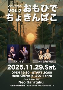 Home くれいどる『おもひでちょきんばこ』 くれいどる『おもひでちょきんばこ』 2025.10.27 Tweet イベント詳細 日付: 2025年11月29日 20:00 – 22:30 出演:くれいどる、プロジェクトーン OPEN 19:30. START 20:00 Music Chagre ¥1,200+1drink Tweet Facebook 最新情報はコチラから★ Cafe & Live Bar Neo Garataku Category info お知らせ メニュー ライブ情報 最新記事 2020.03.25 ライブ情報 年間イベント一覧 2020.03.25 メニュー ドリンクメニュー 2018.10.02 メニュー カフェメニュー 2018.10.02 メニュー フードメニュー 2018.10.01 info ユニット紹介