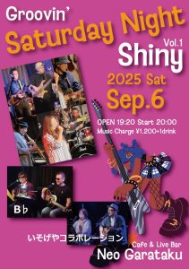 Home Saturday Night Shiny vol.1 Saturday Night Shiny vol.1 2025.09.6 Tweet イベント詳細 日付: 2025年9月6日 20:00 – 22:30 出演:Shiny、B♭ いそげやコラボレーション OPEN 19:30 START 20:00 Music Charge ¥1,200+1drink Tweet Facebook 最新情報はコチラから★ Cafe & Live Bar Neo Garataku Category info お知らせ メニュー ライブ情報 最新記事 2020.03.25 ライブ情報 年間イベント一覧 2020.03.25 メニュー ドリンクメニュー 2018.10.02 メニュー カフェメニュー 2018.10.02 メニュー フードメニュー 2018.10.01 info ユニット紹介