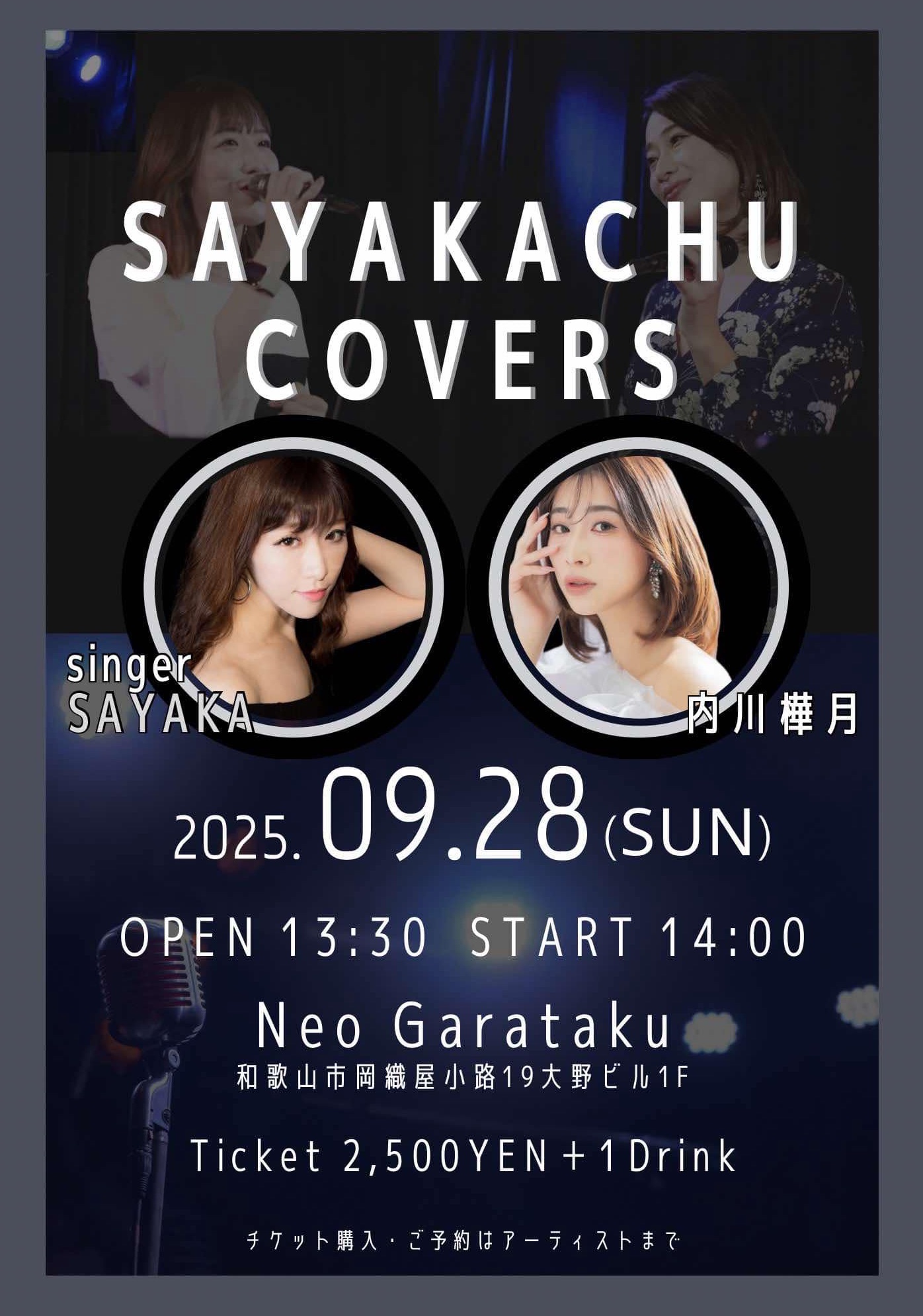 Home SAYAKACHU COVERS SAYAKACHU COVERS 2025.09.6 Tweet イベント詳細 日付: 2025年9月28日 14:00 – 16:30 出演:singer SAYAKA、内川樺月 OPEN 13:30 START 14:00 Ticket 2,500+1drink Tweet Facebook 最新情報はコチラから★ Cafe & Live Bar Neo Garataku Category info お知らせ メニュー ライブ情報 最新記事 2020.03.25 ライブ情報 年間イベント一覧 2020.03.25 メニュー ドリンクメニュー 2018.10.02 メニュー カフェメニュー 2018.10.02 メニュー フードメニュー 2018.10.01 info ユニット紹介